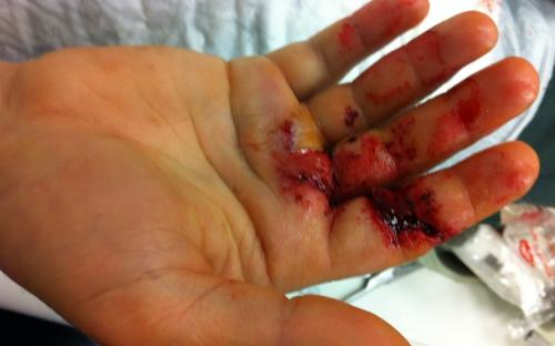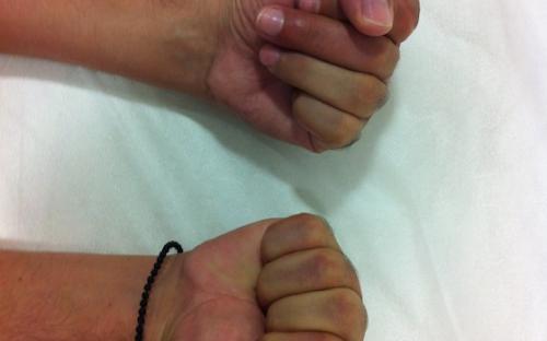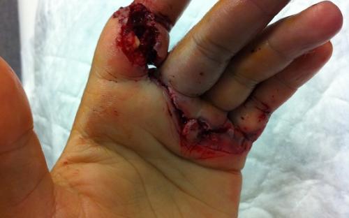 Άνδρας 35 ετών που υπέστη σε εργατικό ατύχημα με πρέσσα ακρωτηριαστική βλάβη και των δύο χεριών του. Έγινε επιτυχημένη επαναγγείωση με άριστο λειτουργικό αποτέλεσμα.